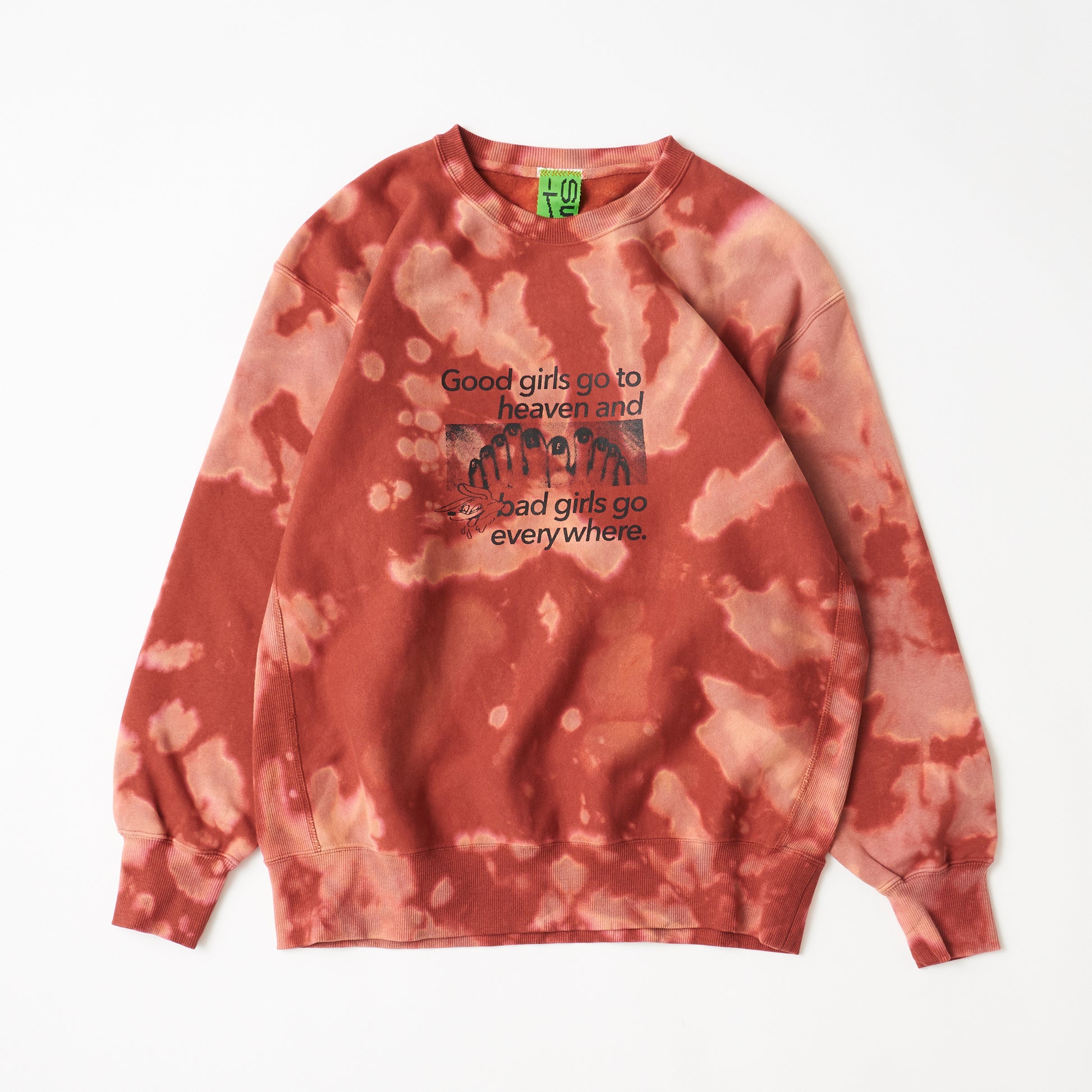 Good girls go to heaven and bad girls go every where : "Good girls go to heaven, bad girls go everywhere" is a famous quote by Mae West, and I first heard it from a friend who told me about it on a Thai sex worker's web page. "Bad girls" are those who do not fit the norm of "how girls should be." By the way, I (super-KIKI) am a genderqueer who feels uncomfortable when limited to "women," but I have always been treated as a "woman," so I wear this as a "bad girl." (super-KIKI)