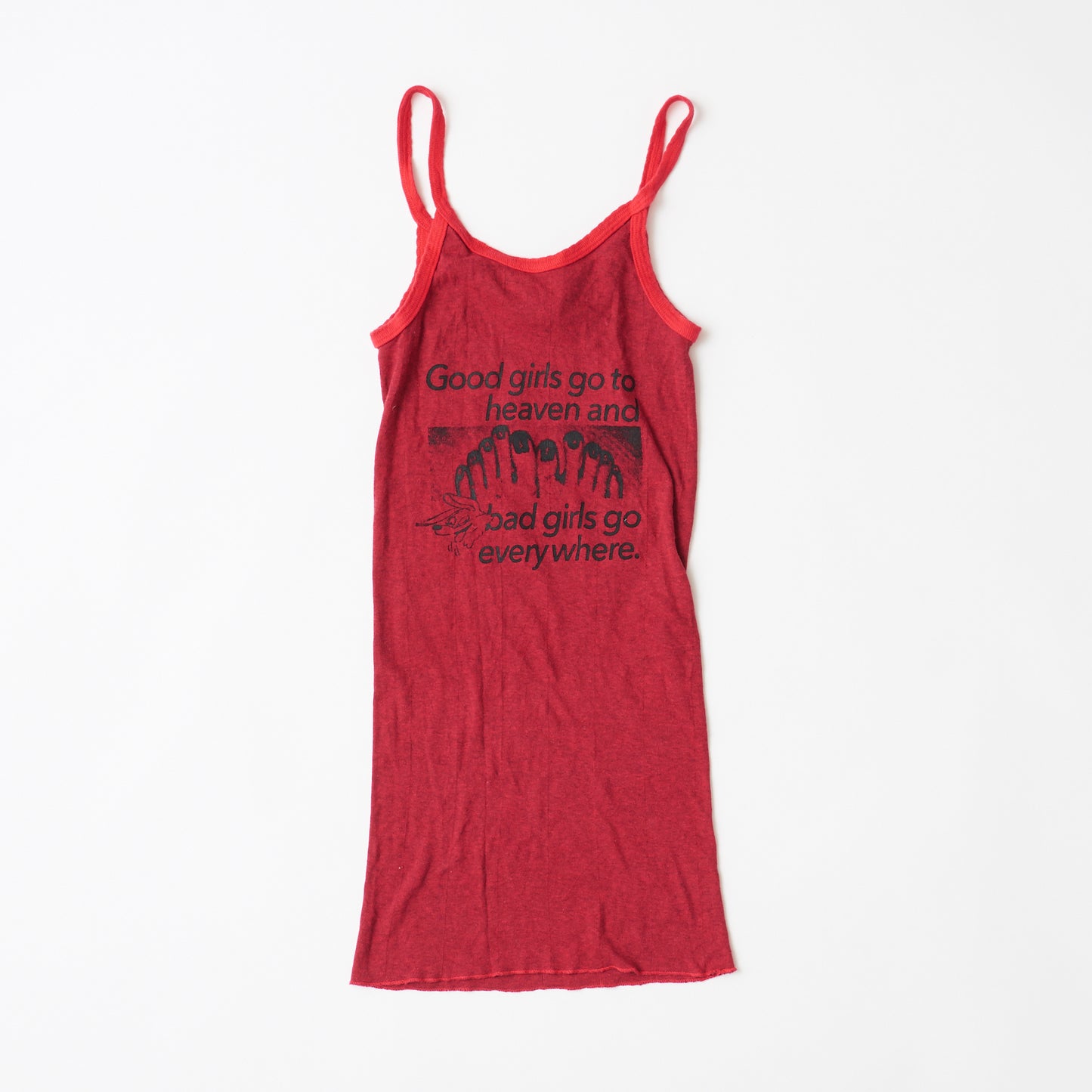 Good girls go to heaven and bad girls go every where : "Good girls go to heaven, bad girls go everywhere" is a famous quote by Mae West, and I first heard it from a friend who told me about it on a Thai sex worker's web page. "Bad girls" are those who do not fit the norm of "how girls should be." By the way, I (super-KIKI) am a genderqueer who feels uncomfortable when limited to "women," but I have always been treated as a "woman," so I wear this as a "bad girl."