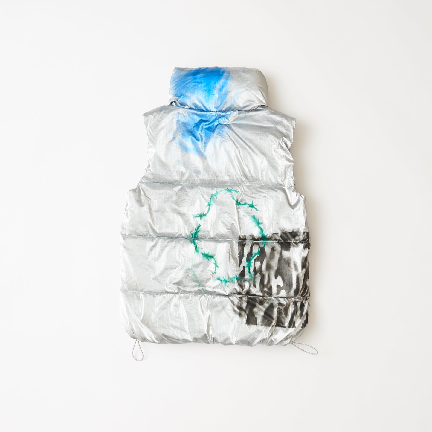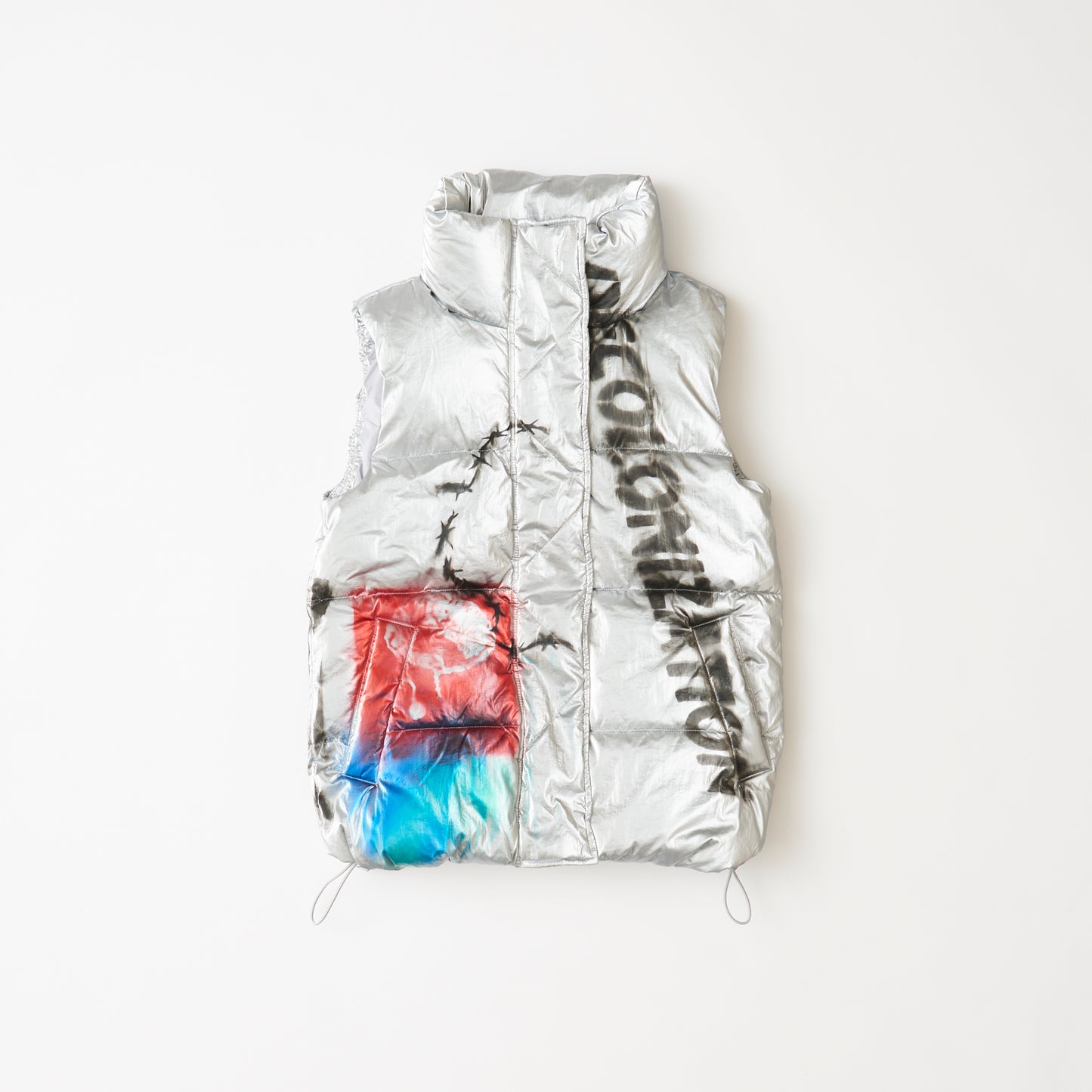 Sleeveless down jacket (silver/spray paint) | Kaiho Decolonization