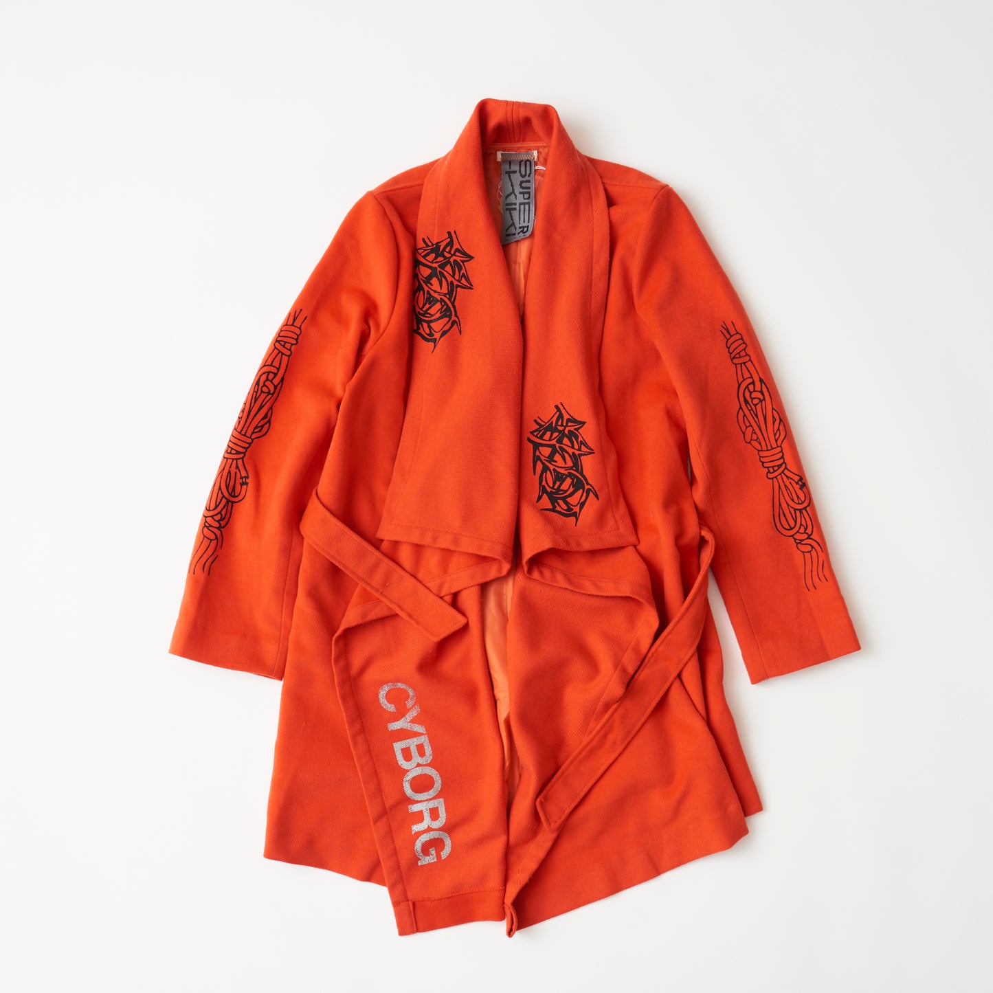 CYBORG:「女性」と扱われるわたしたちは世の中からあらゆる「こうあるべき」という命令を常に受け、差別から生まれた暴力でさえ、その傷でさえ、もはやそれが自分を形作る人格ともなってしまっていることを自覚する瞬間がある。フェミニズムはその傷を鮮明にするものでもあり、それに向き合い闘う作業はそこらじゅうについた古傷をナイフで抉るようなものだ。しかしその権力にカテゴリされ続ける苦痛から逃れようともがく意識こそまさに自我であり、確固たるわたしの意志がそこにあることを強く認識できる。生まれたままの形の、「自然」で「きれい」なわたしなどつまらない。異質であっていい、そもそも異質と本質の境目にわたしはいて、それは最高に複雑でおもしろくて、つよいのだ。私をコントロールしようとする埋め込まれたものと共に生きながら、それさえも自分を強化するパーツとする。我々は自然/機械の境界をかき乱すサイボーグである。(super-KIKI)