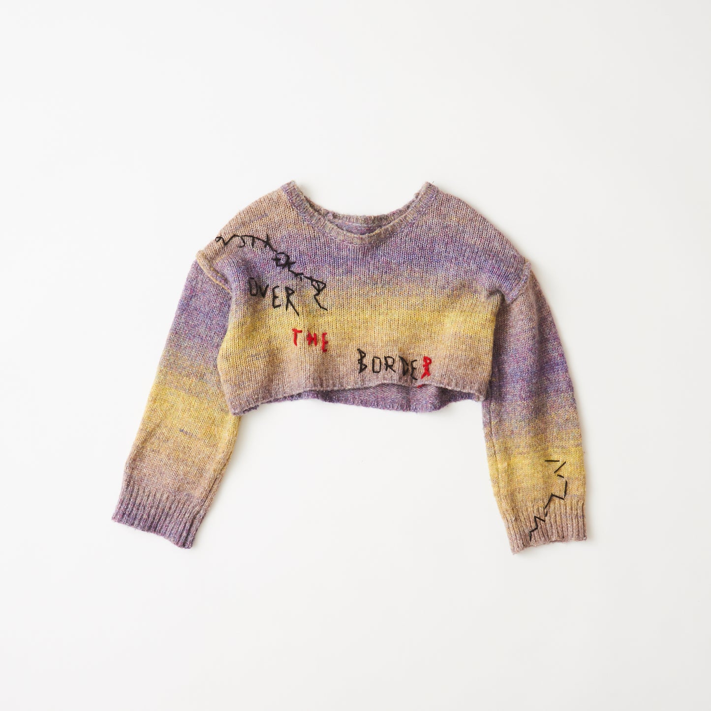 ショート丈ニット(パープルイエロー / オリジナル手刺繍)| OVER THE BORDER