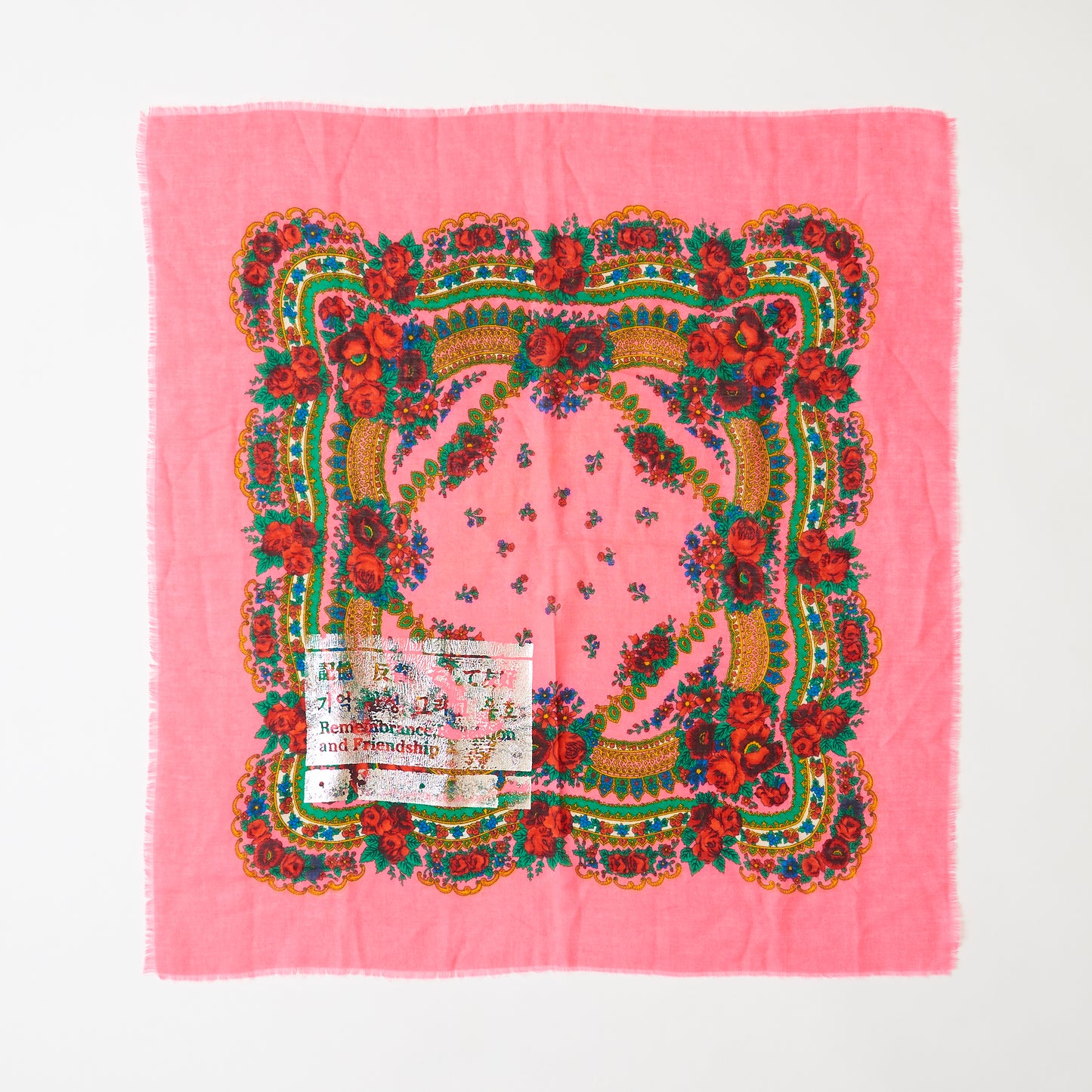 ストール(ショッキングピンク)|追悼碑を背負う